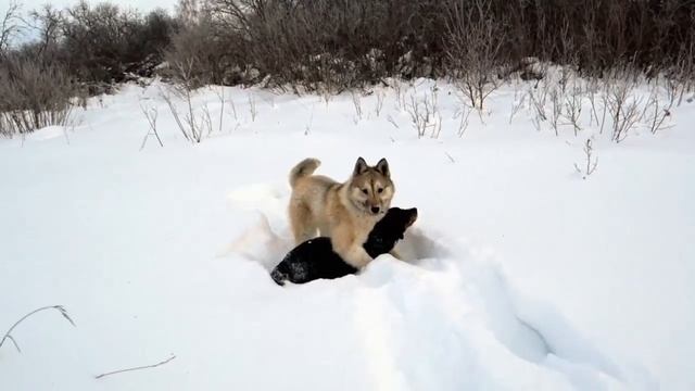 Лайка на охоте сразу же давит его Laika on the hunt immediately crushes him