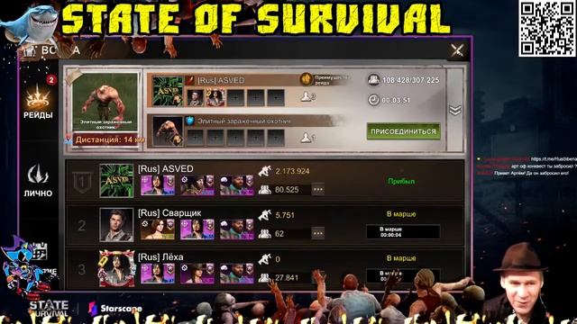 Привет! Рад всех видеть, друзья мои! Болтаем по игре, приятного просмотра! Hello, friends! We play State of Survival, chat and have fun. Welcome! ? #SSRUCAMP ========== State of Survival: The Walking Dead Collaboration ? Установить игру на телефон-планшет: ▶ https://app.starscape.live/zSR9rY0Rk2ryB02i ? Играть с компьютера: ▶ https://bstk.me/rum5AmjGo Помочь каналу: To help the channel: https://www.donationalerts.com/r/3docvit ? https://donate.stream/3docvit Наши партнёры: ??? Пятёрочка - Скидка 20% для зрителей на заказ в приложении https://vse5.prfl.me/test/c837498ec364 Вы получаете скидку 20% на первый заказ от 700₽, скидку 15% на первый заказ от 1000₽ + бесплатную доставку, скидку 23% на первый заказ от 1500₽. Регионы, из которых принимаются активации: Ярославль, Воронеж, Уфа, Тула, Саратов, Санкт-Петербург, Самара, Ростов-на-Дону, Пермь, Нижний Новгород, Набережные Челны, Москва, Краснодар, Казань, Калуга, Ижевск, Дзержинск, Екатеринбург, Новосибирск, Челябинск, Зеленодольск. ??? #SSRUCAMP #StateofSurvival #3docvit