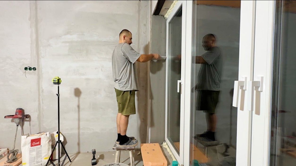 Такого мы не ожидали. Стена сломалась. Штукатурим оконные откосы. Строим дом в деревне.