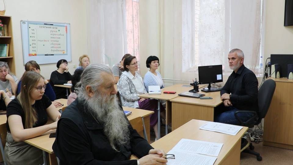 30 июня 2025 года в гимназии преподобного Серафима состоялся последний педсовет в уходящем учебном году. Началась встреча с доклада заместителя директора Ксении Николаевны Смирновой. Она обратила внимание учителей на итоги ЕГЭ и Впр, а также затронула тему показателей эффективности деятельности педагогического работника для расчета стимулирующих выплат. Учителя узнали, что надбавки за классное руководство и высшую категорию по сравнению с ушедшим годом будут увеличены. Затем к собравшимся обратился директор гимназии Евгений Олегович Евдокимов. Свою речь он начал со слов Онегина из одноимённого романа в стихах А. С. Пушкина, что было символично, тк педсовет проходил в кабинете литературы и русского языка. Евгений Олегович обратил внимание на то, что рейтинг гимназии растёт и что гимназия стала обладателем уже второго гранта фонда президентских грантов. Меняется и облик гимназии: ремонтируется крыша и некоторые классы, а также открываются три новых кабинета. Затронули и тему стипендиальной программы для учащихся. В завершении своего выступления Евгений Олегович призвал каждого учителя к личной ответственности перед собой и детьми. Затем с речью к собравшимся выступил духовник гимназии протоиерей Александр Трушин. Он призвал учителей привлекать священников в учебную деятельность и включать их в разные уроки, чтобы с т.з. Православия раскрывать определённые темы.