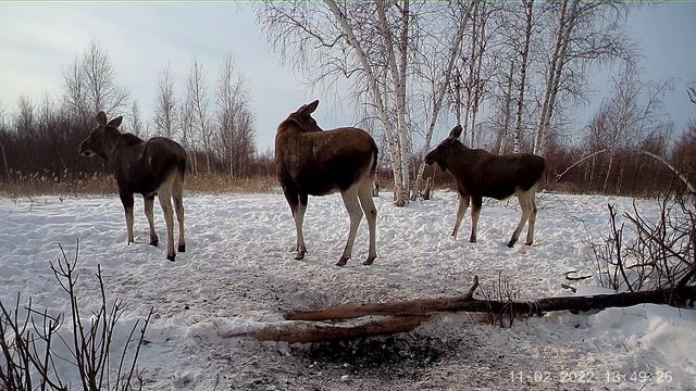 Жизнь лосей. Лоси у солонца.
