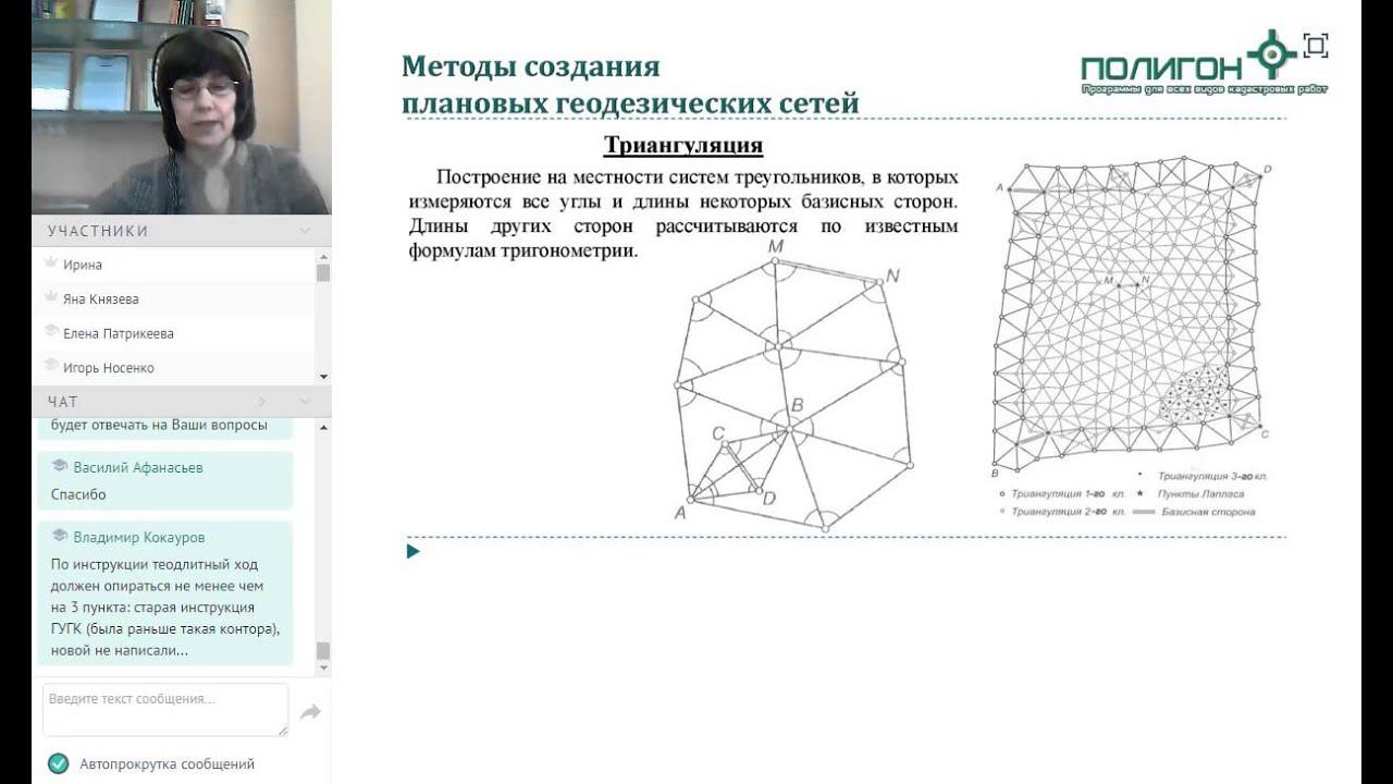 Бесплатный вебинар для кадастровых инженеров со специалистом Росреестра от разработчиков программ "Полигон". Тема: Геодезическая основа кадастра. Использование геодезического метода и метода спутниковых геодезических измерений при определении координат точек Дата: 16.03.2016 Ведущий: Дехканова Н.Н., к.э.н., начальник отдела геодезии и картографии Управления Федеральной службы государственной регистрации, кадастра и картографии по Кировской области