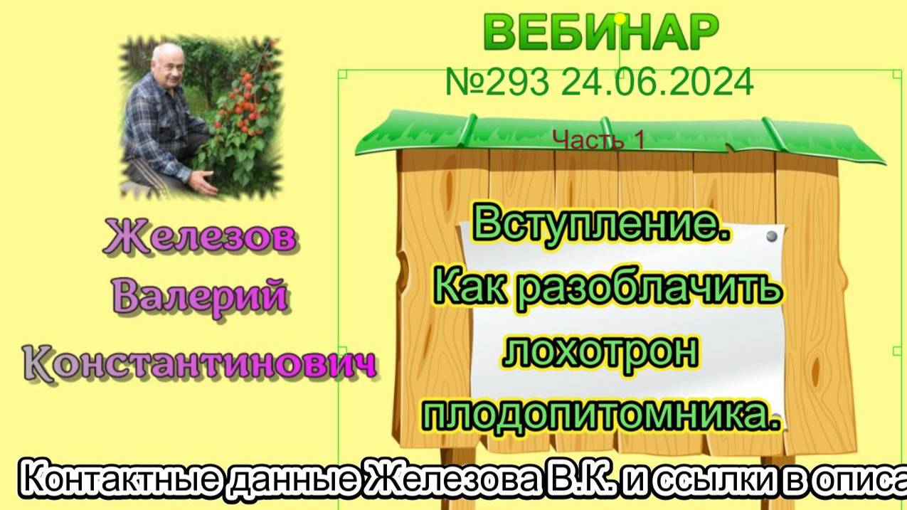 Железов Валерий. Вебинар 293. ч. 1. Вступление. Как разоблачить лохотрон плодопитомника.