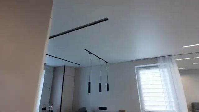 Установлены белые матовые потолки MSD Premium, профиль по периметру EuroKraab. Система для штор с рассеивателем SLOTT PARSEK 2.0, световые линии SLOTT LINE, подвесная люстра и споты. В санузлах установлены щелевые диффузоры. Заказать установку натяжных потолков можно на официальном сайте компании ESTRELA https://www.potolki-estrela.ru/ Мы в Контакте - https://vk.com/potolkiestrela Наш Инстаграм - https://www.instagram.com/potolkiestrela/ Получить подробную консультацию можно по телефону 8 (812)-920-64-19 звонок бесплатный