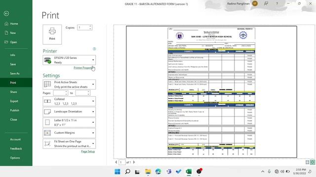 SET-UP PRINTER PAPER SIZE - FOR AUTOMATED SCHOOL FORM