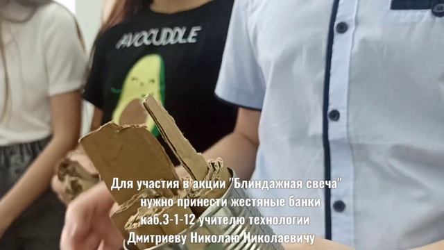 Для участия в акции объявляем сбор ЖЕСТЯНЫХ БАНОК. Приносить учителю технологии Дмитриеву Николаю Николаевичу в к.3-1-12