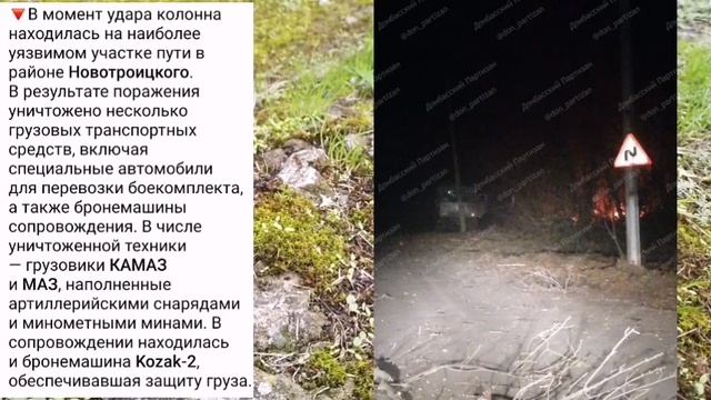 Коллона боеприпасов уничтожена на маршруте к передовой