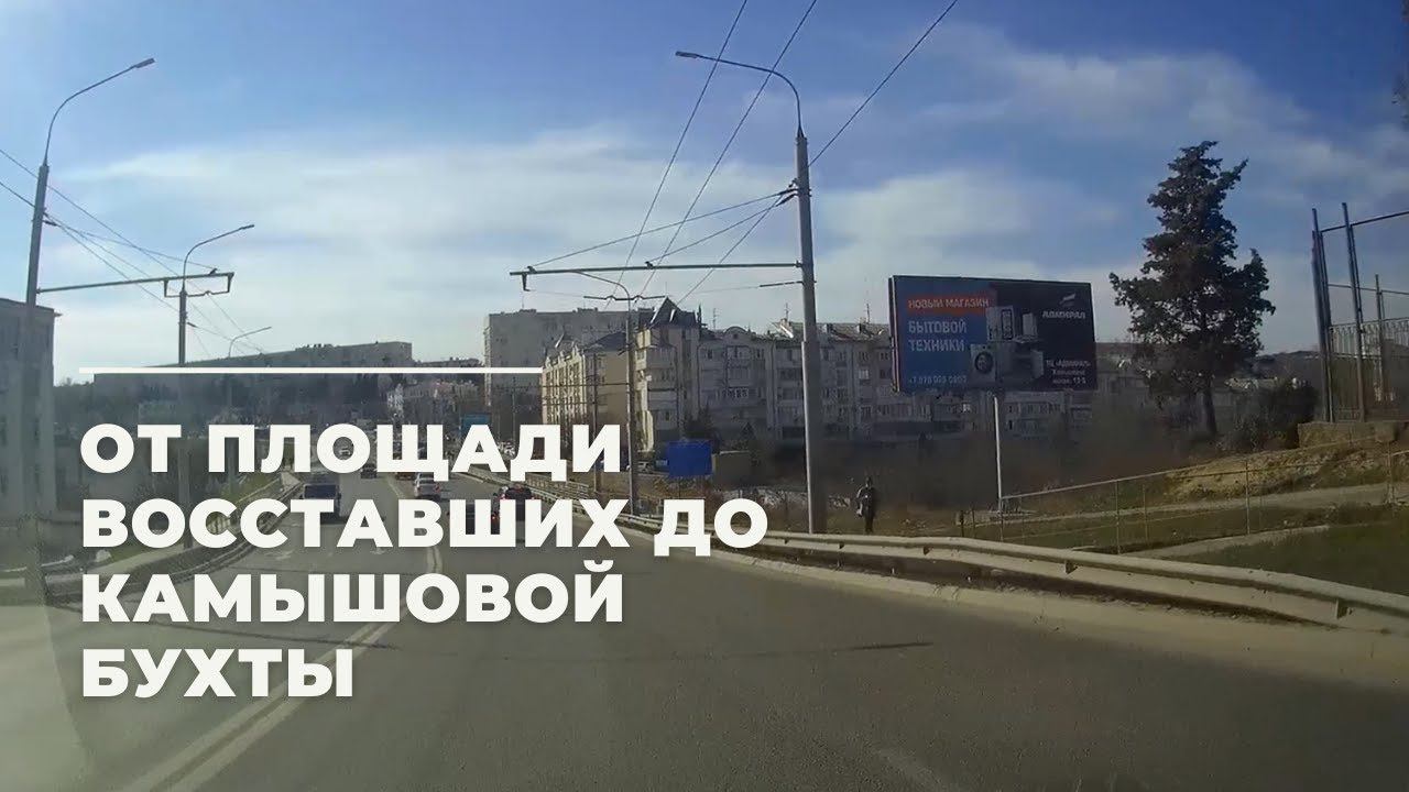 Едем через весь город Севастополь от Площади Восставших в центре города до Камышовой бухты в Севастополе.