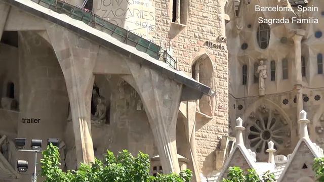 Barcelona, Spain. The Templo Expliatorio de la Sagrada Familia, the most complex work of Antonio Gaudi Cornet. UNESCO World Cultural Heritage Site. This is a panorama at the "Passion Facade" from the left to the right. Sunny summer day.