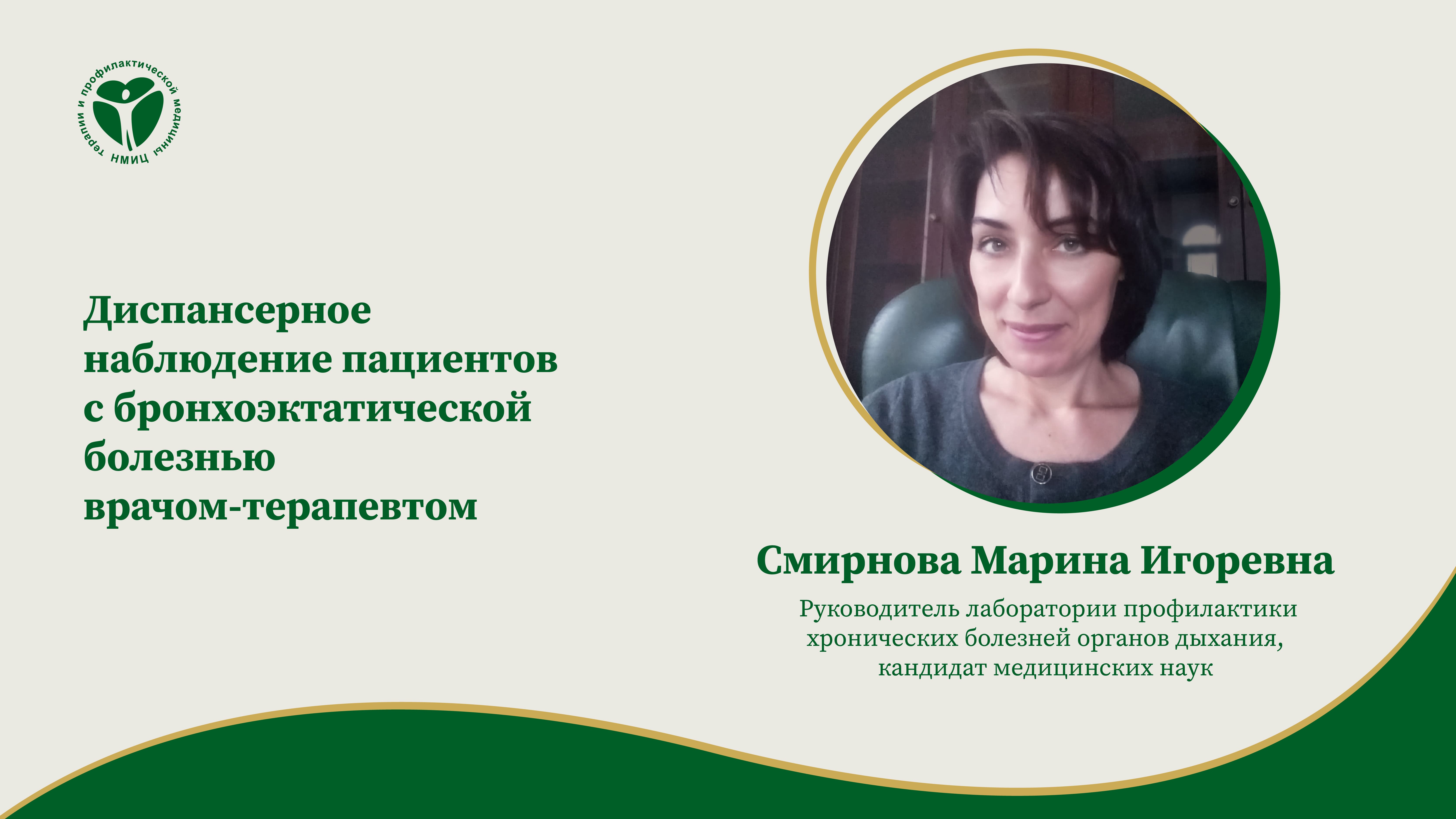 «Диспансерное наблюдение пациентов с бронхоэктатической болезнью врачом-терапевтом», семинар от 30.05.2023. Лектор: Смирнова Марина Игоревна — к.м.н., руководитель лаборатории профилактики хронических болезней органов дыхания ФГБУ «НМИЦ ТПМ» Минздрава России.