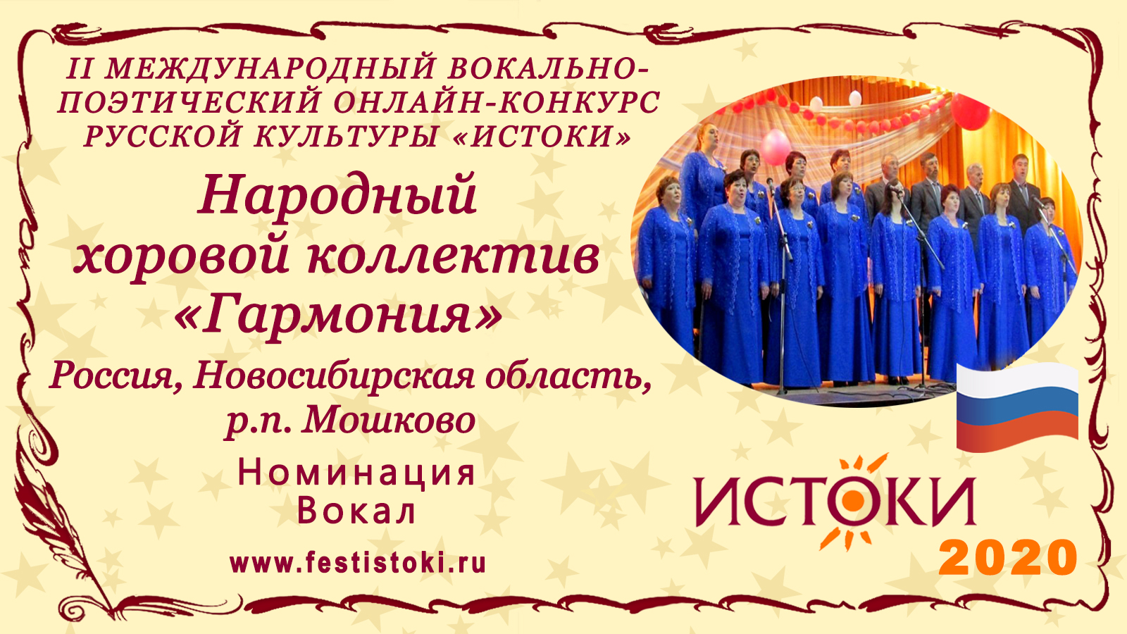 Дипломант II Международного вокально-поэтического онлайн-конкурса русской культуры «Истоки». Номинация - Вокал. Песня "Как прекрасна жизнь". Музыка Л.Афанасьева, слова И.Шаферана. Аранжировка аккомпаниатора коллектива А.Н.Назарова. Сайт: www.festistoki.ru / www.festistoki.com E-mail: festistoki@mail.ru