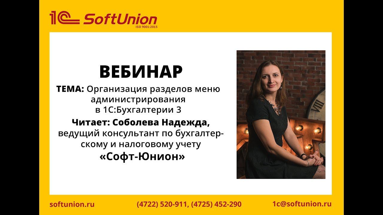 Запись вебинара"Организация разделов меню администрирования в 1С:Бухгалтерии 3"