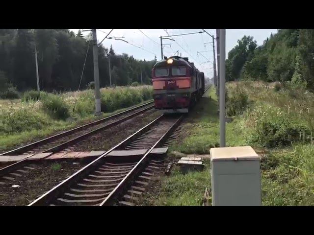 ТЕПЛОВОЗ ПО НЕПРАВИЛЬНОМУ ПУТИ!! 2М62-1214(ТЧЭ-23) с приветливой бригадой по пл. Часцовская.