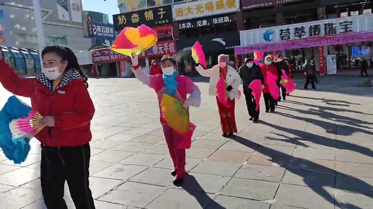 А вот они - весёлые танцующие бабушки в суровую погоду! В Суйфэньхэ минус 10 в тени, кстати.