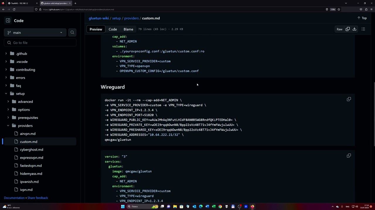 Настройка Gluetun на Truenas Scale