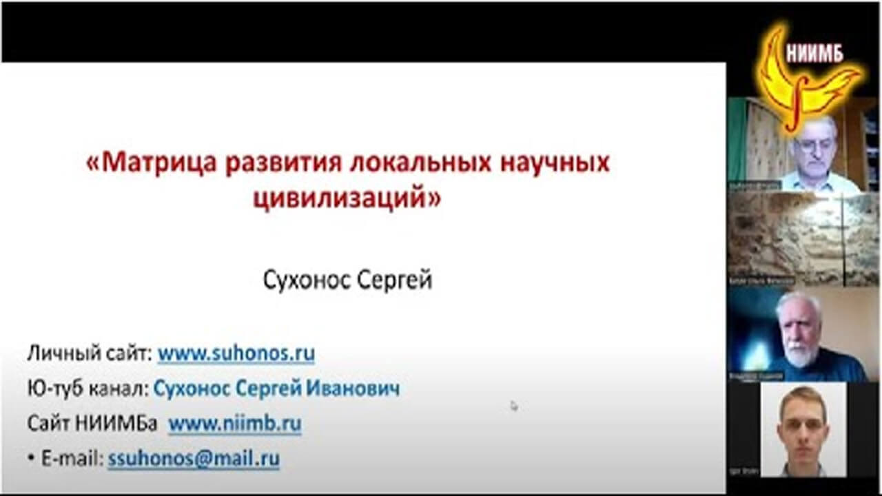 Совместный проект НИИ Моделирования Будущего и Школы Здравого Смысла. Матрица развития локальных цивилизаций - Семинар НИИМБ (Научно-исследовательский Институт Моделирования Будущего) №3. БУДАНОВ ВЛАДИМИР ГРИГОРЬЕВИЧ, советский и российский физик, философ, кандидат физико-математических наук, доцент, доктор философских наук. Заведующий сектором междисциплинарных проблем научно-технического развития в Институте философии РАН. Специалист в области теоретической физики, синергетики, философии науки, образования. Институт социально-экономического прогнозирования им. Д.И.Менделеева. СУХОНОС СЕРГЕЙ ИВАНОВИЧ, кандидат технических наук, генеральный директор фирмы «Рус-Атлант». Директор Института масштабной гармонии Академии тринитаризма. Автор открытия периодичности масштабной структуры Вселенной и единой логики развития цивилизаций, автор многих научных публикаций в России и за рубежом. https://shzs.info/index.php/shzs-information/virtual-studio/2445-modeliruem-budushchee-budanov-suhonos