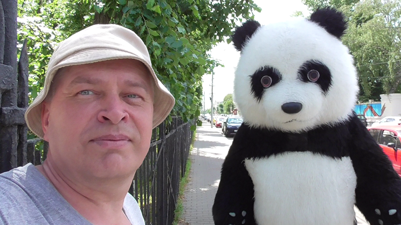 Геннадий Горин и панда в городе, город Орёл