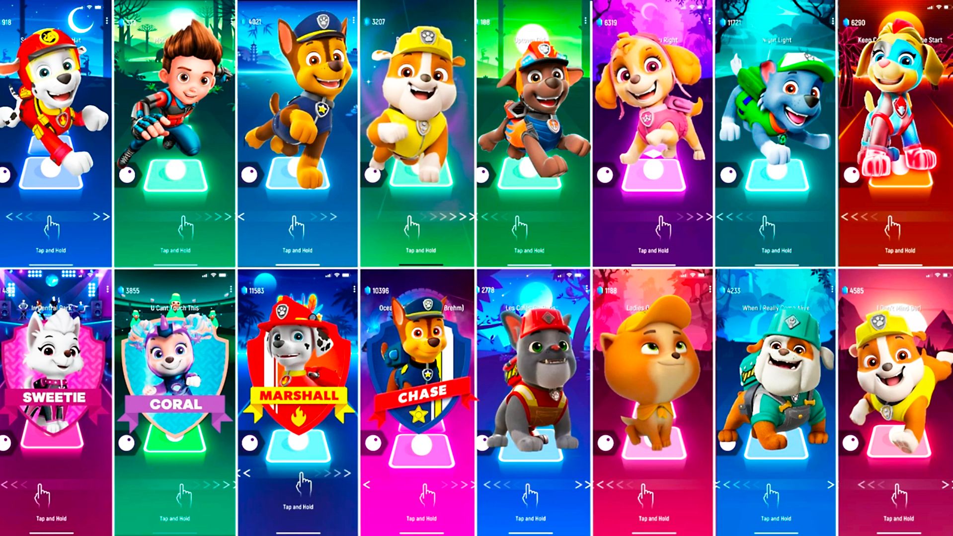 Мультики для Детей Щенячий Патруль Tiles Hop - МАРШАЛЛ, РАЙДЕР, ГОНЩИК, КРЕПЫШ, ЗУМА, СКАЙ