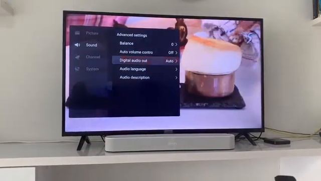 How to set sound output from TCL 49” smart TV to output sound to 5.1 channel on a SONOS beam.