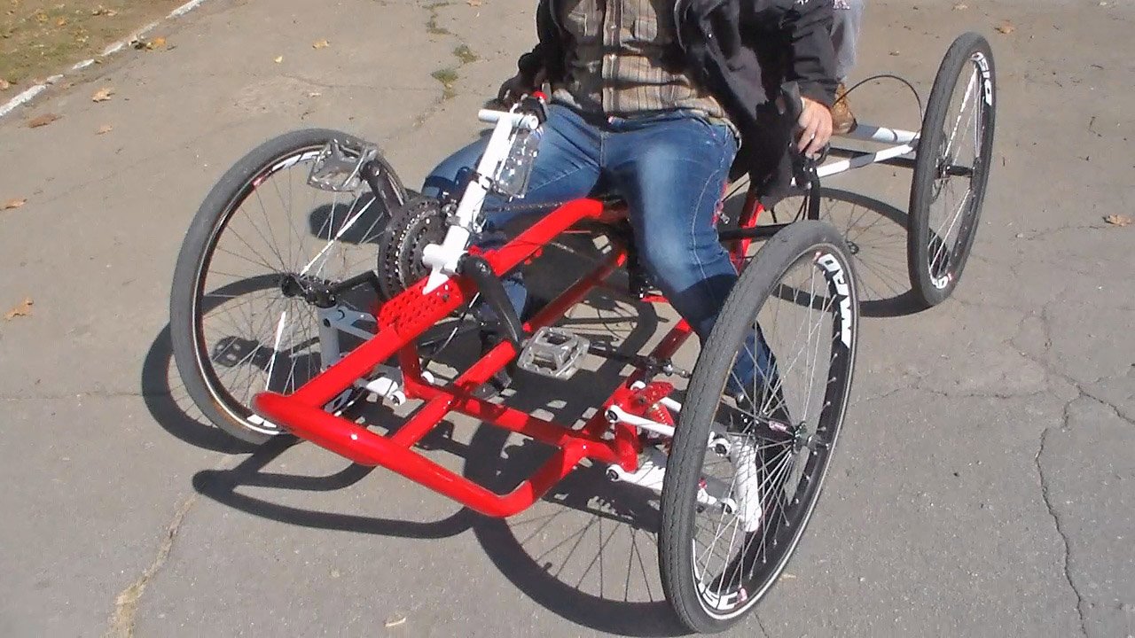 Четырех и трёх колёсный велосипед. Оригинальная эксклюзивная конструкция транспортного средства. Шок