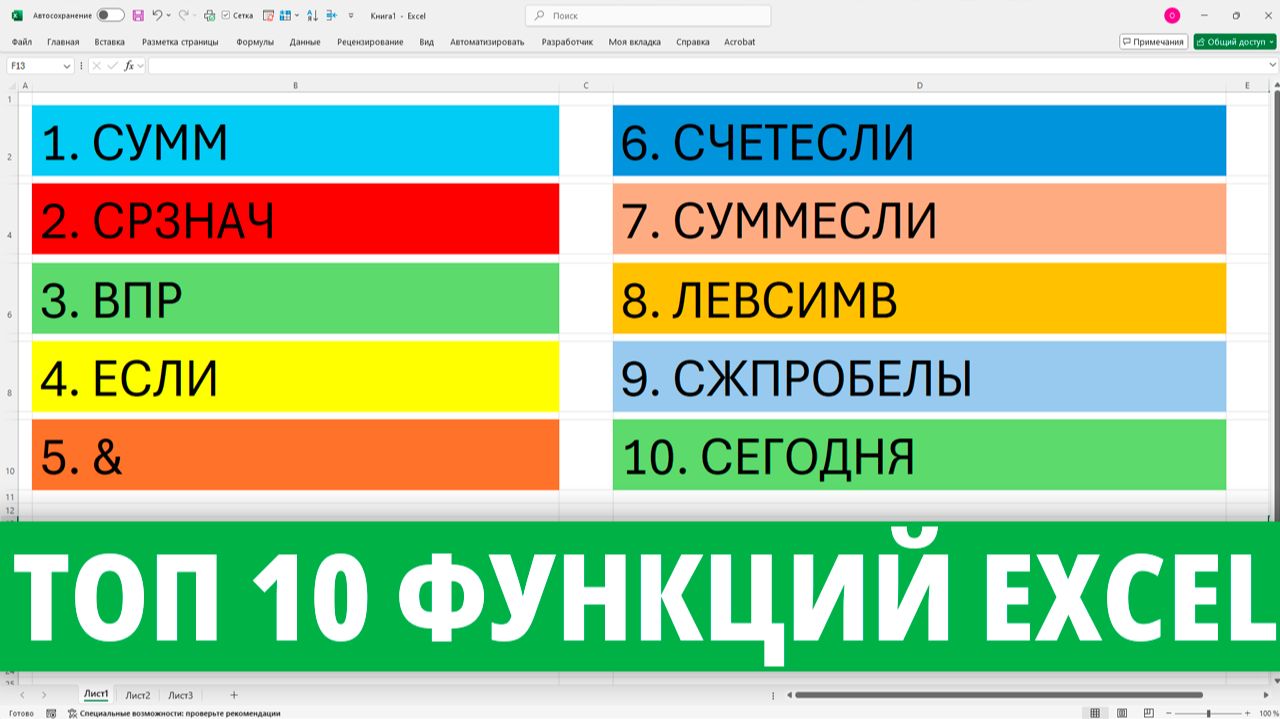 Формулы Excel - ТОП 10 ФУНКЦИЙ которые нужно знать каждому