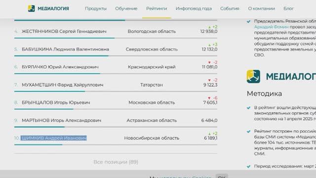 20.04.25 Андрей Шимкив вошел в первую десятку медиарейтинга глав законодательных органов
