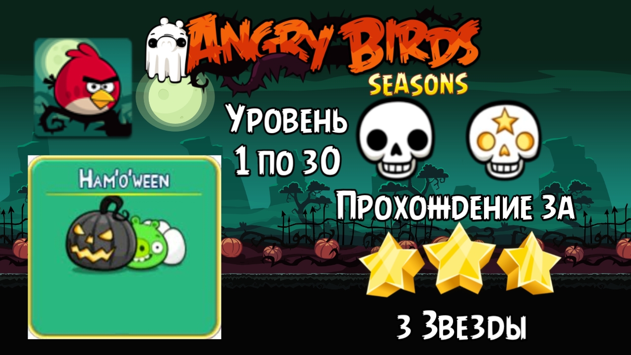 Angry birds Seasons Ham'O'Ween Уровень 1 по 30 Полный Геймплей (З Звезды) + Золотое Яйцо