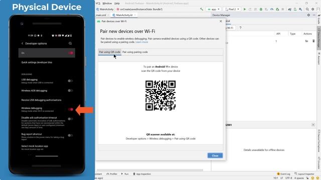 Access 7000+ courses for 60 days FREE: https://pluralsight.pxf.io/c/1291657/424552/7490 With new Android Studio Bumblebee (2021.1.1) you can run and debug app wirelessly using WIFI on your physical device (Android 11 onwards). You don't need any USB cable to connect device to your laptop anymore for debugging. . . Please donate and support my work (If you think my free tutorials are better than paid ones :) - Patreon: https://bit.ly/patreon-donate - Paypal/Payoneer: sriyank123@gmail.com - UPI (only for India): smartherd@okaxis :: If you want to develop a website or a mobile app, email me your requirement at sriyank.siddhartha@gmail.com :: Free demos provided beforehand :: - Access my premium courses: https://bit.ly/sriyank-courses Free Programming courses: - Ruby Programming: https://bit.ly/smyt-r - Dart Programming: https://bit.ly/smyt-d - Kotlin Programming: https://bit.ly/smyt-k - Java Programming: https://bit.ly/smyt-j - Kotlin Coroutines: https://bit.ly/smyt-coru Free Flutter course: - Flutter App Development: https://bit.ly/2Rg7EFR Free Android courses: - Android using Kotlin: https://bit.ly/smyt-ka - Android using Java: https://bit.ly/smyt-ja - Android Material Design: https://bit.ly/2SMJqU6 - Android Jetpack Architecture: https://bit.ly/yt-j - Android Multiple Screen Support: https://bit.ly/smyt-mss - Android Retrofit: https://bit.ly/2Ee6GHn More free programming courses: - https://bit.ly/smy-list Check out my website: - https://bit.ly/smartherd Let's get in touch! [Sriyank Siddhartha] LinkedIn: https://bit.ly/sriyank-linkedin Facebook: https://bit.ly/smartherd-facebook Instagram: https://bit.ly/sriyank-instagram Twitter: https://bit.ly/sriyank-twitter Github: https://bit.ly/smartherd-github ---- Thank you for your love and support ----