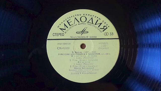 БЕЛА БАРТОК СЮИТА ИЗ БАЛЕТА «ЧУДЕСНЫЙ МАНДАРИН». РАПСОДИИ ДЛЯ СКРИПКИ С ОРКЕСТРОМ. ИСПОЛНЯЕТ БОЛЬШОЙ СИМФОНИЧЕСКИЙ ОРКЕСТР ВСЕСОЮЗНОГО РАДИО, ДИРИЖЁР ГЕННАДИЙ РОЖДЕСТВЕНСКИЙ. СКРИПКА – МИХАИЛ ЧЕРНЯХОВСКИЙ Вот долго-долго думал, кого публиковать после Ференца Листа, по какому принципу. Или пианиста-композитора к пианисту-композитору, или венгра к венгру (хоть и Лист, и Барток венгры с натяжкой)? Всё-таки опубликовал венгра к венгру. Бела Бартока я уже публиковал вот здесь: https://vk.com/@156617538-bela-bartok-1-i-koncert-paul-hindemit-koncert-dlya-skripki-s https://aleksey-vyrsky.livejournal.com/?skip=10 Что про него написать ещё? Удивительный композитор, создававший потрясающую музыку. Вот этот самый «Чудесный мандарин», он поражает меня тем, что создаваясь в бурные годы (1919-1924), он не только отразил всеобщие революционные настроения эпохи, но и является удивительно красивым произведением. Роскошные созвучия, глубокое звучание, тонкое управление ритмом – это всё здесь есть. При этом, будучи современником Рахманинова и «внучатым» учеником Листа, он писал совершенно другую музыку, сформировал свой собственный, неповторимый музыкальный язык. Впрочем, не буду вдаваться в подробности, после ссылок публикую расшифровку текста с обратной стороны конверта пластинки. На второй стороне пластинке представлены очень яркие концертные пьесы «Рапсодии для скрипки с оркестром». Настроения здесь спокойнее, чем в «Чудесном мандарине», но слышно сильное влияние вошедшей тогда в моду додекафонии. Именно влияние, но не полное использование этого появившегося нового средства повествования. Думаю, что Бартока удержала от модных веяний народная венгерская музыка, которую он тщательно изучал на протяжении всей жизни. помимо прочего, мне очень нравится то, что композитор не стал перегружать «Рапсодии» техническими усложнениями, хотя они, конечно и не просты для исполнения. Но главную сложность я вижу именно в этнической окраске: сколь трудно для иностранца понять и верно исполнить Чайковского, столь не проста для не венгра исполнение этих произведений. Кстати, гармонический ход из финала Первой рапсодии используется в первой части диска «Mad hatter» Chic Corea. Преемственность Большой Музыки. Исполнение На мой взгляд, Геннадию Николаевичу Рождественскому удалось очень точно передать все нюансы и оттенки музыки Бела Бартока. Такое впечатление, что он сам хорошо знаком с венгерской культурой. Хоть я его и поругивал иногда, но вот просто очень хорошо всё здесь. Исполнение Михаила Черняховского просто удивительное, для меня странно, что такой хороший музыкант мало известен у нас. Запись Качество записи близко к идеальному: очень точный объём пространства, идеально соответствующий музыке, инструмент и оркестр звучат в потрясающем балансе, я слышу все нюансы и оттенки, при этом – всё вместе, а не «тысячу мелочей», как это иногда бывает. Запись 1970-го года. Пластинка идеальная, очень тихая масса, жёлтый пятак. Единственное, что меня удивило, так это то, что при довольно продолжительной записи, оставлено очень много свободного пространства у пятака. Зачем так уплотнять запись было? Никаких перегрузок, всё роскошно. Диск довольно тяжёлый, 149 грамм. Релиз 1971 год, Мелодия Треклист: Сторона 1 Волшебный Мандарин (Miraculous Mandarin), Suite From The Ballet Op. 19 Сторона 2 Рапсодии для скрипки с оркестром No. 1 In G Major - E Major No. 2 In D Minor Дирижёр – Г. Рожд