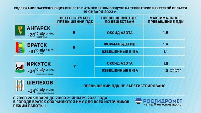 [20.01.2023] Мониторинг состояния атмосферного воздуха 19.01.2023
