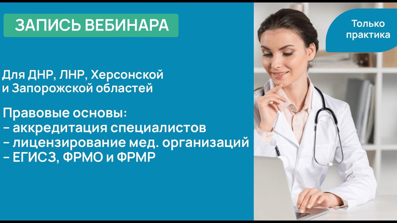 Вебинар для специалистов ДНР, ЛНР, Запорожской и Херсонской областей. Правовые основы: – Аккредитация специалистов – Лицензирование мед.организаций – ЕГИСЗ, ФРМО, ФРМР Делимся записью вебинара с руководителем методического отдела Натальей Купкиной и медицинским юристом Яной Винокуровой. Разобрали все процессы допуска к работе медицинских специалистов новых территорий РФ. Вебинар разделен на два блока: – аккредитация специалистов, ЕГИСЗ/ФРМР/ФРМО – лицензирование медкникик и требования, предъявляемые к медицинской документации с пациентами Рекомендуем посмотреть всем владельцам, ИП, кадровым службам, руководителям и медицинским специалистам. Программа вебинара – Какое обучение необходимо для допуска к работе – Дистанционно или очно? Какое обучение обязательно – Когда нужно проходить первичную специализированную аккредитацию – Когда можно пройти периодическую аккредитацию – Как правильно оформлять и отправлять документы в ФАЦ и когда – Лицензирование медицинских организаций – Требования, предъявляемые к медицинской документации с пациентами – Правовые аспекты деятельности – Как разобраться в ЕГИСЗ, ФРМО и ФРМР Пройдите наш тест: «Как получить допуск к работе специалистам новых территорий РФ»: https://mrqz.me/65c91ba3313e450026eb2085?utm_source=youtube