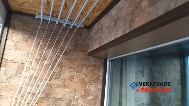 Балкон под ключ 137 серия с отделкой камнем. Отделка пола на балконе керамогранитом. Сделали шкафчик и установили потолочную сушилку для белья. Хотите такой балкон - звоните 7027023. Компания Vekatrade