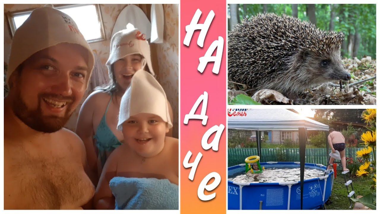 Влог из бани на даче//встретили ёжиков//Купаемся в бассейне//моя семья//семейный влог//family vlog