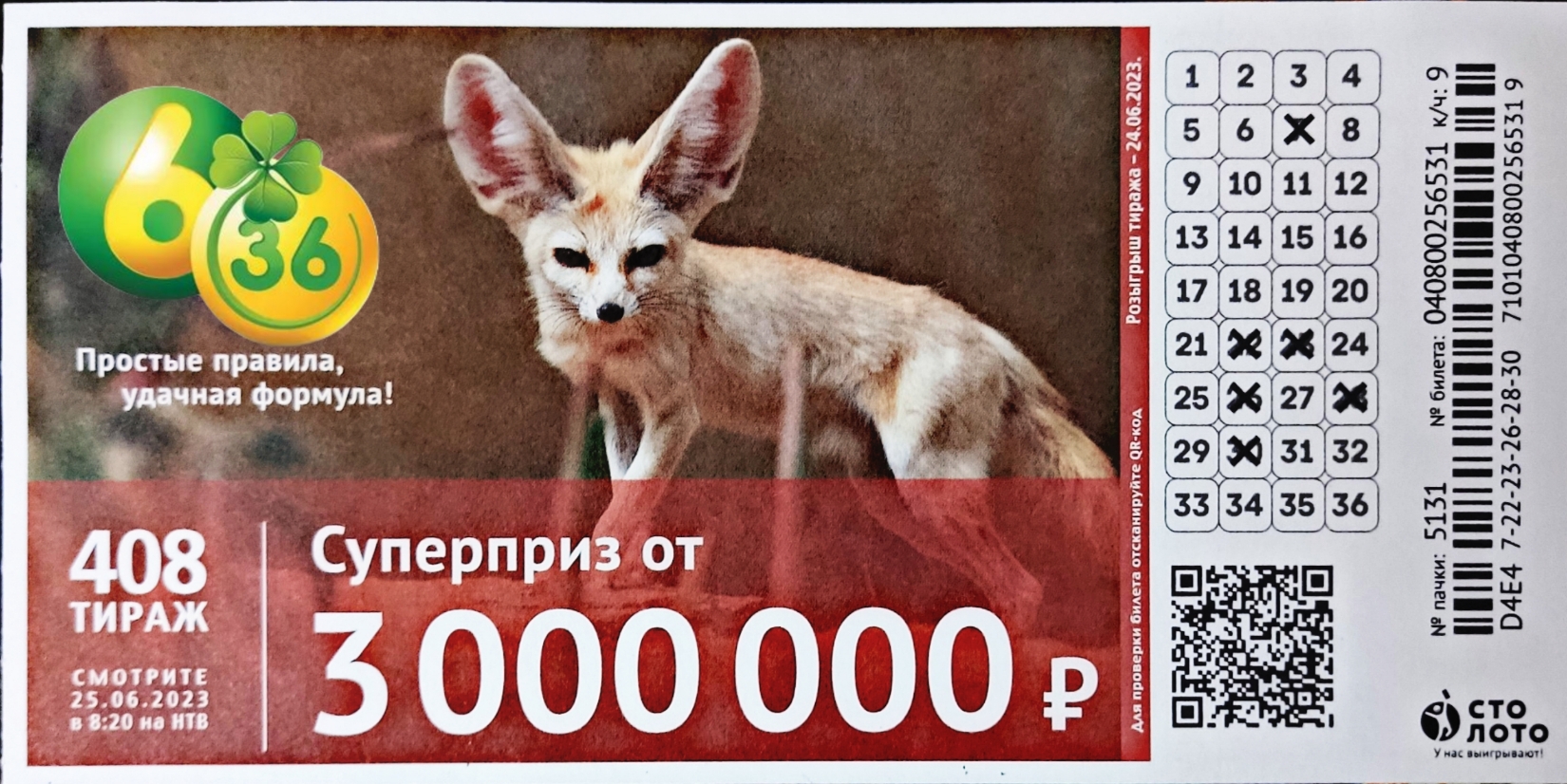 ИГРАЮ В 6 ИЗ 36| ТИРАЖ 408 | ПРОВЕРИТЬ БИЛЕТ