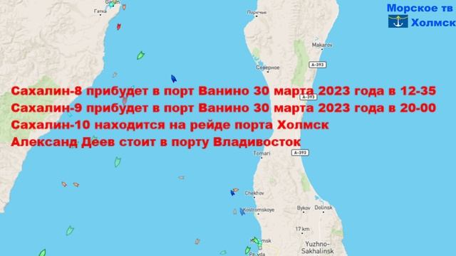 Позиция пассажирских судов для линии Ванино - Холмск 29 марта 2023 года