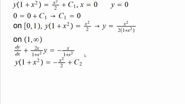 For the classes of Atul Roy: Solving a basic linear differential equation with the use of an integrating factor Please note that there is an algebra mistake in the example 2 at the end, y(x^-1)=(x^4/4)+C is solved as y=(x^5/4)+Cx NOT as y=(x^3/4)+(C/x) and in the example 6, the sign of the partial of N wrt x should be reversed. Sorry for the inconvenience.