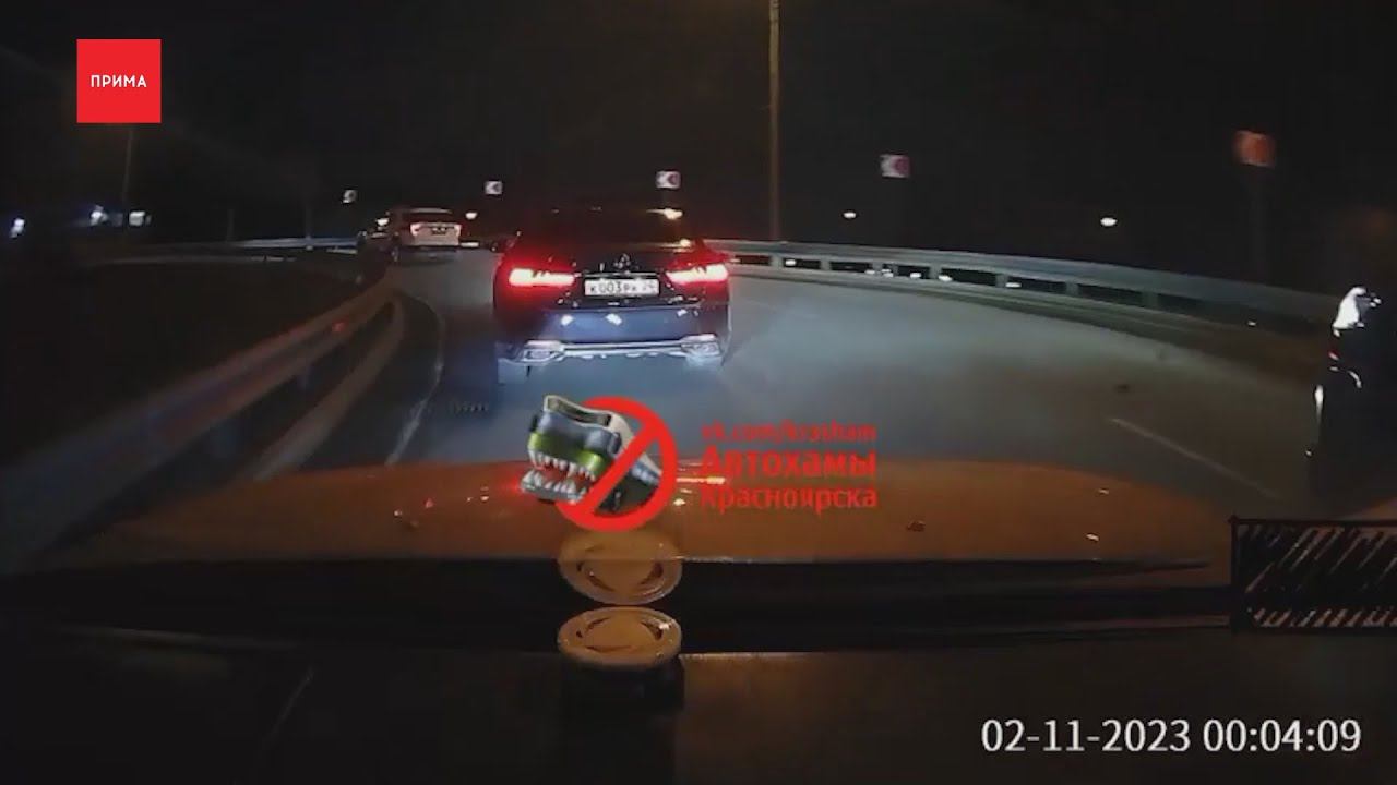 На Дубровинского водитель не поделил дорогу с кортежем машин правительства. Два «Лексуса» с буквами КРК на номерах в сопровождении «Форда» спецроты ГИБДД заняли обе полосы и не пропускали остальных участников движения. По информации СМИ, эти автомобили закреплены за губернатором края Михаилом Котюковым и руководителем администрации губернатора Сергеем Пономаренко. Дорожный конфликт попал на запись регистратора в машине красноярца. На кадрах видно, как две чёрные машины заняли две полосы, не дают себя обогнать и пытаются прижать к обочине машину автора видео. Красноярец в свою очередь тоже пошёл на принцип и не пропускал автомобили правительства. Наши коллеги с портала «НГС» разобрали видео вместе с автоэкспертом и нашли, как минимум, четыре нарушения правил. Кортеж создавал помеху для движения других автомобилей, машина, закреплённая за Пономаренко, на развязке не уходит вправо, а едет прямо, через сплошные, второй «Лексус» закреплённый за Котюковым, перестроился через сплошную, не доезжая до круговой развязки и этот же автомобиль потом повернул с внутреннего круга на кольце. В то же время и сам владелец регистратора несколько раз создавал аварийную ситуацию, когда несколько раз резко ускорился и перестроился. В ГИБДД заявили, что «Форд» спецроты не сопровождал машины КРК, а ехал в попутном направлении. Почему внедорожник пытался подрезать машину красноярца там не рассказали, но добавили, что сейчас проводится проверка.