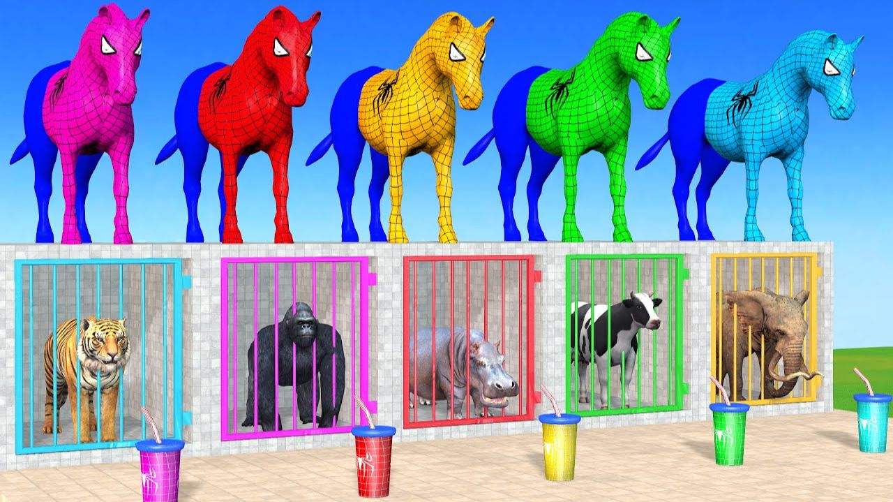 Веселые игры с слоном, гориллой, бегемотом, тигром - 3D игра с животными - Забавные 3D животные