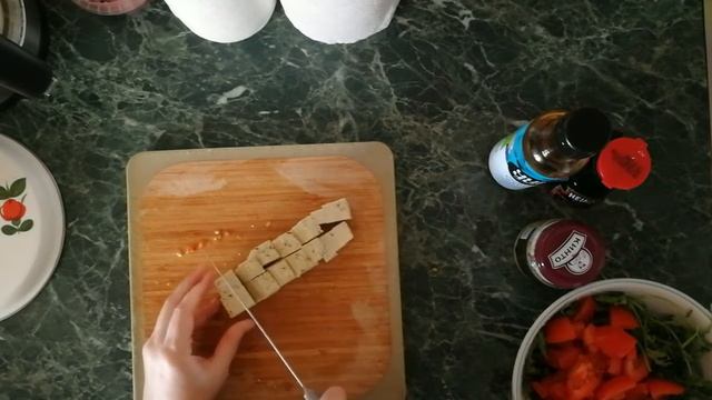 понадобится: тыква, руккола, помидоры, сур Тофу, горчица, соевый соус, олив. масло