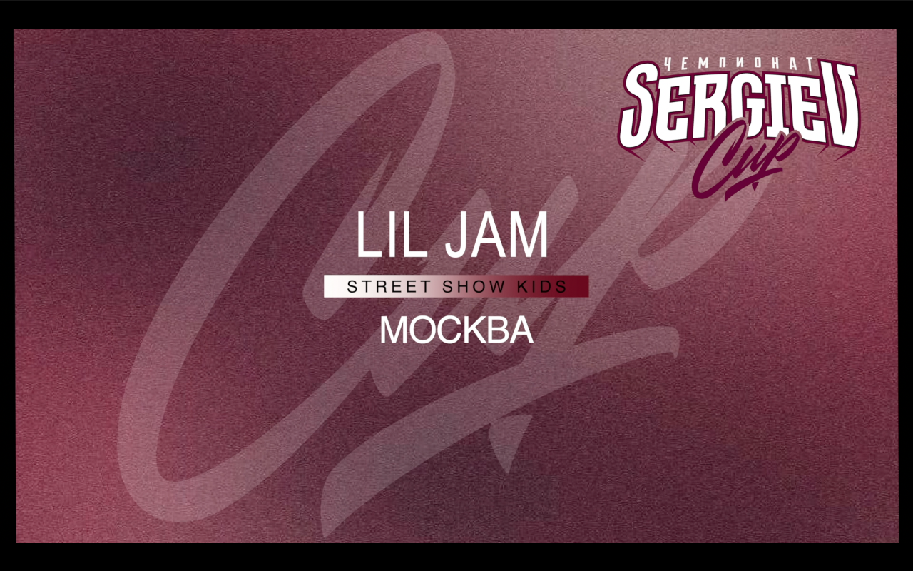 SERGIEV CUP 2024 Lil Jam Номинация: Street Show Категория: Kids Жюри чемпионата: Тоха Андреев Артем Соляник Артем Нефедов ОРГАНИЗАТОР МЕРОПРИЯТИЯ: TRIASH PRODUCTION Информация о предстоящих чемпионатах: Telegram : https://t.me/triash_prod ВК : https://vk.com/sergiev_cup YOUTUBE : https://www.youtube.com/channel/UCPDX3Znh7OJQqmb0v5u1MHw Дополнительная информация : +7 (916) 533-50-63
