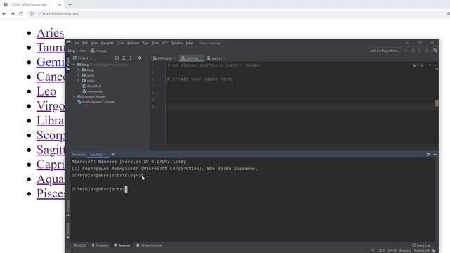 Курс на степике по Django https://stepik.org/z/114288 Степик с меня берет комиссию поэтому 1) Лучший способ приобрести курс - личный банковский перевод в РФ или покупку тарифа на boosty. Я добавлю вас вручную на курс по вашему ид. https://t.me/artem_egoroff 2) оплачивать напрямую на степике по реферальной ссылке https://stepik.org/z/114288 так с меня возьмут меньше комиссии Доступ к закрытым видео на один месяц вы можете получить, став спонсором канала https://www.youtube.com/channel/UCMcC_43zGHttf9bY-xJOTwA/join https://boosty.to/egoroff_channel https://www.patreon.com/artem_egorov Телеграмм канал моего проекта https://t.me/python_egoroff Группа в вк https://vk.com/python.study Курс по основам Python https://stepik.org/course/63085/ Курс по ООП на Python https://stepik.org/z/114354 Локальный сервер разработки Django — это встроенный лёгкий веб сервер, который вы можете использовать в процессе разработки вашего сайта. Он включен в Django для того, чтобы вы могли быстро приступить к разработке вашего сайта без траты времени на конфигурирование вашего боевого веб сервера раньше времени. Этот сервер разработки отслеживает изменения в вашем коде и автоматически перезагружает его, помогая видеть вносимые вами изменения без перезагрузки веб сервера.