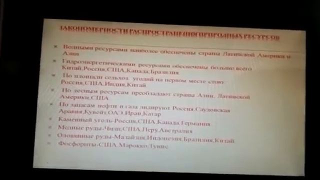 Шу ауданы мұғалімдерінің География пәнінен онлайн сабақтары Классификация природных ресурсов, 7 кл