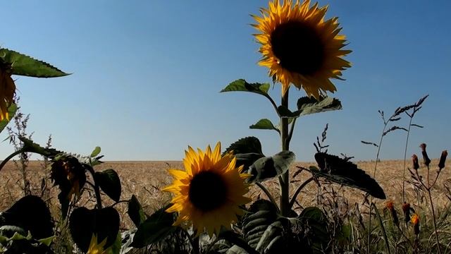 Autumn beautiful sunflowers in the field by the road..mp4