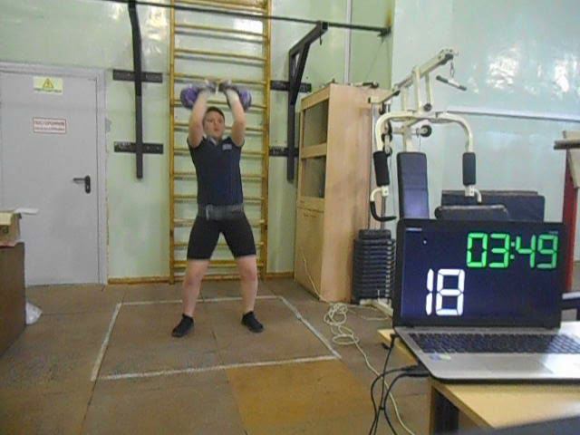 Гиревой спорт. Кузнецова Дарья 2005 года рождения. 4 этап Онлайн Кубка мира "Двоеборье" первое упражнение "Толчок 2-х гирь" 12 кг за 5 минут 19.04.2021 года. Результат 60 подъёмов.