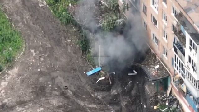 Атака FPV дронами по пункту дислокации хохлов в Угледаре.