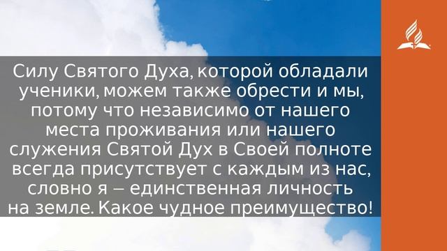 Но Я истину говорю вам: лучше для вас, чтобы Я пошел; ибо, если Я не пойду, Утешитель не придет к вам; а если пойду, то пошлю Его к вам (Ин. 16:7). Должно быть, учеников было трудно убедить в том, что Иисус желает покинуть их ради их же блага. Ведь им было хорошо вместе. Он любил их неизменной любовью. Его учение вдохновляло. Его исцеления превосходили любое человеческое искусство врачевания. Он мог обеспечить пищей в критическое время. Кто же захочет, чтобы такая удивительная Личность оставила его? Но одну проблему ученики не взяли в расчет. Иисус по Своей воле сложил с Себя Свою вездесущность, поэтому, когда они будут рассеяны повсюду, Он не сможет одновременно присутствовать со всеми ими. Отдаленность от Иисуса тревожила бы учеников, поэтому они стремились бы быть рядом с Ним, а не нести Евангелие в отдаленные места земли. Силу Святого Духа, которой обладали ученики, можем также обрести и мы, потому что независимо от нашего места проживания или нашего служения Святой Дух в Своей полноте всегда присутствует с каждым из нас, словно я — единственная личность на земле. Какое чудное преимущество! Все это легко понять, если обратиться к простой иллюстрации, которую я часто использую. В настоящее время телевидение достигло почти всех уголков современного мира. Поэтому, вероятнее всего, телевизионные сигналы проходят через комнату, в которой вы находитесь в данный момент. Чтобы убедиться в этом, можно просто включить портативный телевизор, на экране которого изображение возникает прямо «из воздуха» без подсоединения телевизора к какому-либо внешнему источнику. Если бы сто человек, каждый с портативным телевизором, присутствовали в вашей комнате или в соседнем доме, или за городом, то все они видели бы полное изображение, а не его сотую часть. Иисус предлагает силу Святого Духа, и обладать ею вы можете прямо сейчас. Если вы еще не воспользовались этим преимуществом, настройте сегодня вашу антенну молитвы и примите полноту Божьего Духа. Когда вы сделаете это, то увидите полную картину любви и истины Иисуса в четком изображении. МОЛИТВА Отец Небесный, помоги мне нести изображение Твоей любви и истины миру под руководством вездесущей силы Святого Духа. https://esd.adventist.org/library/periodicals/ezhednevnyie-chteniya/ #адвентисты #АдвентистыСедьмогоДня #Церковь #ЦерковьАдвентистовСедьмогоДня #ЦерковьХристианАдвентистовСедьмогоДня