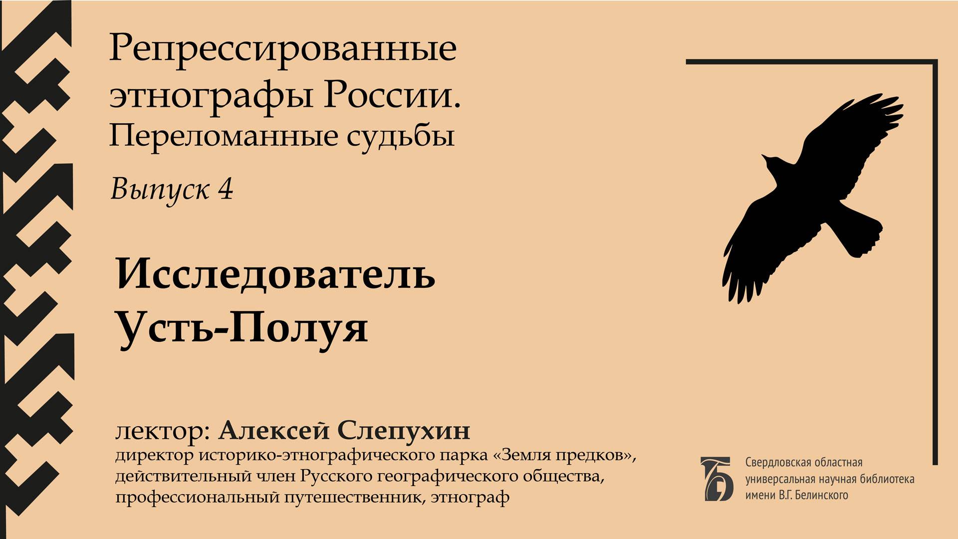 Лекция из цикла «Репрессированные этнографы. Переломанные судьбы». Талантливейшего ученого, археолога и палеоэтнолога, которому посвящен разговор, ждала серьезнейшая карьера, мощный взлет, уникальные находки и скрупулезно собранные коллекции. Все это труды молодого исследователя Василия Степановича Адрианова. Он прожил совсем немного – 32 года. При этом его работами руководствовались такие крупнейшие специалисты, как В. Н. Чернецов и В. И. Мошинская. В нынешнее время коллекции из Усть-Полуйского памятника, коллекции Адрианова также вызывают живой интерес и споры. Лектор – Алексей Слепухин, профессиональный путешественник, руководитель Комиссии по этнографии и исторической географии Свердловского отделения Русского географического общества (СО РГО). Лекция состоялась в 2021 г. Свердловская областная универсальная научная библиотека им. Белинского http://book.uraic.ru/ сайт https://vk.com/club6745014 VK