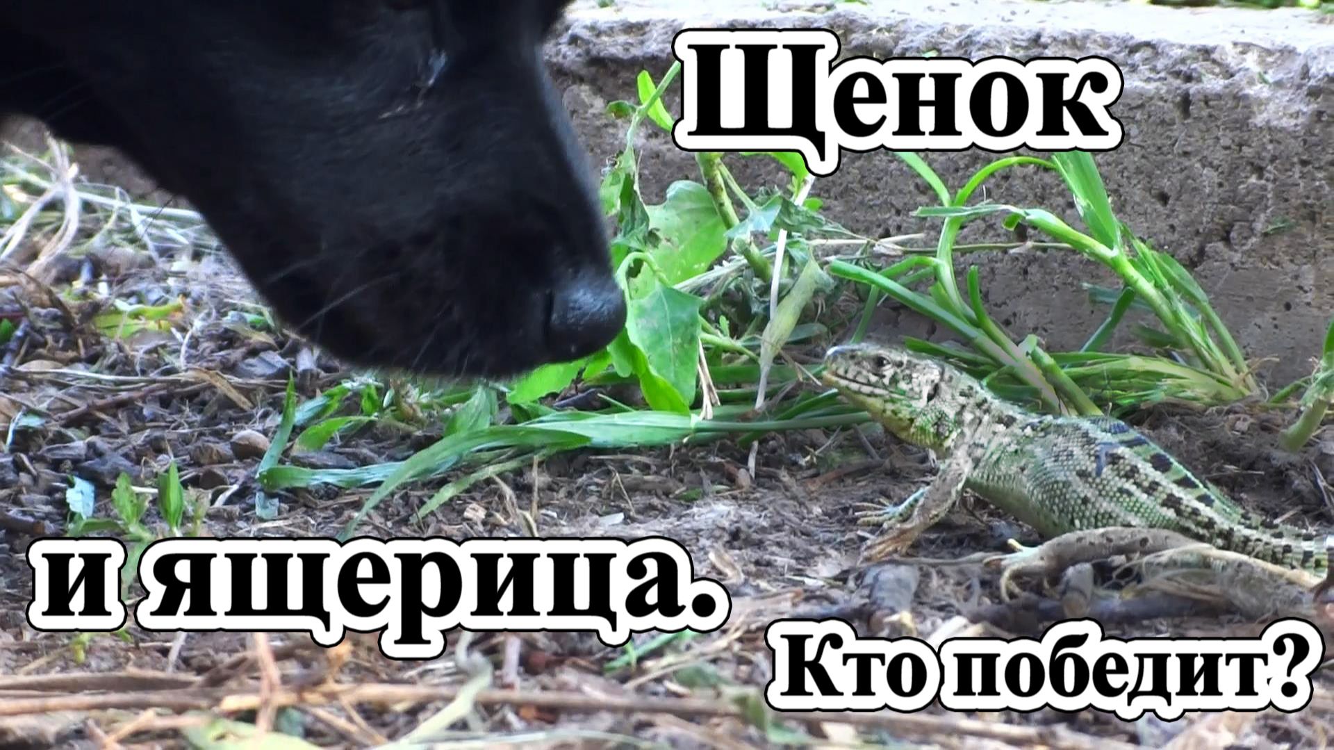 Противостояние щенка и ящерицы. Кто победит?