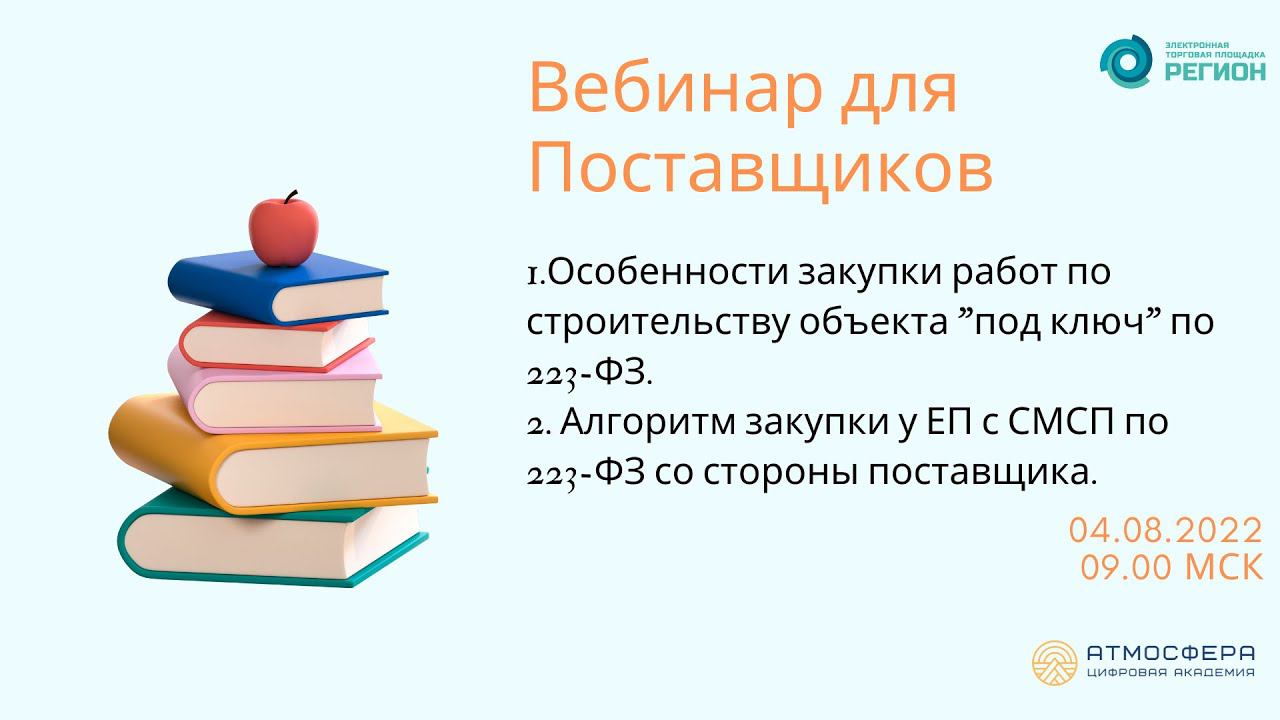 Подписывайтесь на нас в социальных сетях, чтобы не пропустить свежие новости: https://academy-atmosphere.ru/zakupki https://t.me/academy_atmosfera https://vk.com/academy_atmosfera https://rutube.ru/channel/24606397/ 00:00 Вступление 01:21 Приветствие спикера Губайдуллину Асылъяр Ильдусовну 01:39 Особенности закупки работ по строительству объекта «под ключ» по 223-ФЗ 03:14 223 ФЗ 03:48 Изменения в строительных закупках 05:43 Письма Минфина РФ 06:30 Разъяснение ФАС 07:29 Преимущества строительных закупок «под ключ» 09:58 Обратить внимание на ПоЗ 10:49 НМЦД 12:32 Приказ Минстроя России от 4 августа 2020 г. № 421/пр «Об утверждении Методики определения сметной стоимости строительства, реконструкции капитального ремонта, сноса объектов капитального строительства, работ по сохранению объектов культурного наследия (памятников истории и культуры) народов Российской Федерации на территории Российской Федерации» 14:29 Что предусматривают заказчики 15:22 Наиболее часто встречаемые требования к участникам закупок 20:45 Вопросы СРО 21:15 ВАЖНО 24:39 Приказ Федеральной службы по экологическому, технологическому и атомному надзору от 4 марта 2019 г. N 86 25:19 Проверяем членство в СРО 26:00 Постановление Правительства РФ от 25 мая 2022 г. N 945 "Об утверждении состава сведений, содержащихся в едином реестре о членах саморегулируемых организаций в области инженерных изысканий, архитектурно-строительного проектирования, строительства, реконструкции, капитального ремонта, сноса объектов капитального строительства и их обязательствах, и Правил формирования и ведения единого реестра о членах саморегулируемых организаций в области инженерных изысканий, архитектурно-строительного проектирования, строительства, реконструкции, капитального ремонта, сноса объектов капитального строительства и их обязательствах, в том числе включения в указанный реестр сведений" 27:59 Аналогия с 44 ФЗ 29:00 Решение Тюменского УФАС РФ 09.06.2022 072/06/44/80/2022 30:55 ГрК РФ ст. 47,48, 52,55.5.-1 32:08 Статья 3.1-3. Особенности заключения и исполнения договоров, предметом которых являются подготовка проектной документации и (или) выполнение инженерных изысканий, строительство, реконструкция и (или) капитальный ремонт объектов капитального строительства 32:56 Закупка строительных работ под ключ 44 ФЗ 33:02 Изменения в строительных закупках 33:35 Закупка строительных работ под ключ 44 ФЗ 34:13 Отменили ч.55 ст.112 44 ФЗ 34:34 Административная практика 34:36 Решения ФАС 35:32 Решение Новосибирского УФАС России№054/06/33-578/2022 от 06.04.2022 37:06 Судебная практика 37:07 Обзор судебной практики по вопросам, связанным с применением Закона N 223-ФЗ (утв. Президиумом Верховного Суда РФ 16.05.2018) 38:00 Вопросы от спикера 49:25 Приветствие спикера Султанову Лилию Файласовну 49:41 АЛГОРИТМ ЗАКУПКИ У ЕП С СМСП ПО 223-ФЗ СО СТОРОНЫ ПОСТАВЩИКА 49:45 Требования к закупке у единственного поставщика 53:40 Общие правила для закупок у ЕП с СМСП 01:02:29 Закупки, включаемые в норматив 25 % и 20 % 01:08:01 Малые закупки – инструмент по выполнению требований законодательства 01:10:28 Сроки оплаты по договорам 01:11:53 Закупки по принципу электронного магазина (общие правила) 01:15:47 Закупки по принципу электронного магазина (алгоритм) 01:26:27 Вопросы от участников 01:39:09 Анонс вебинаров на август