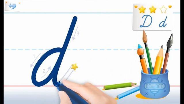 How to write English letter "D". Cursive writing for kids and beginners. Handwriting practice
